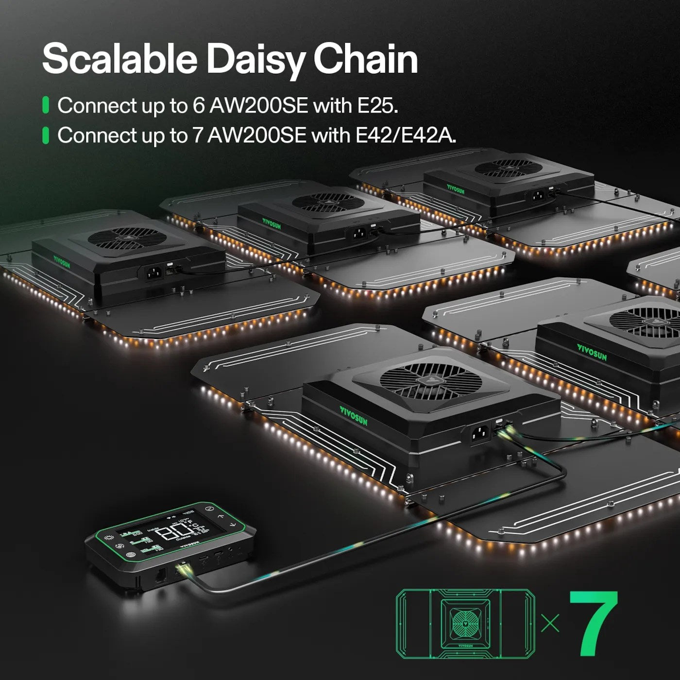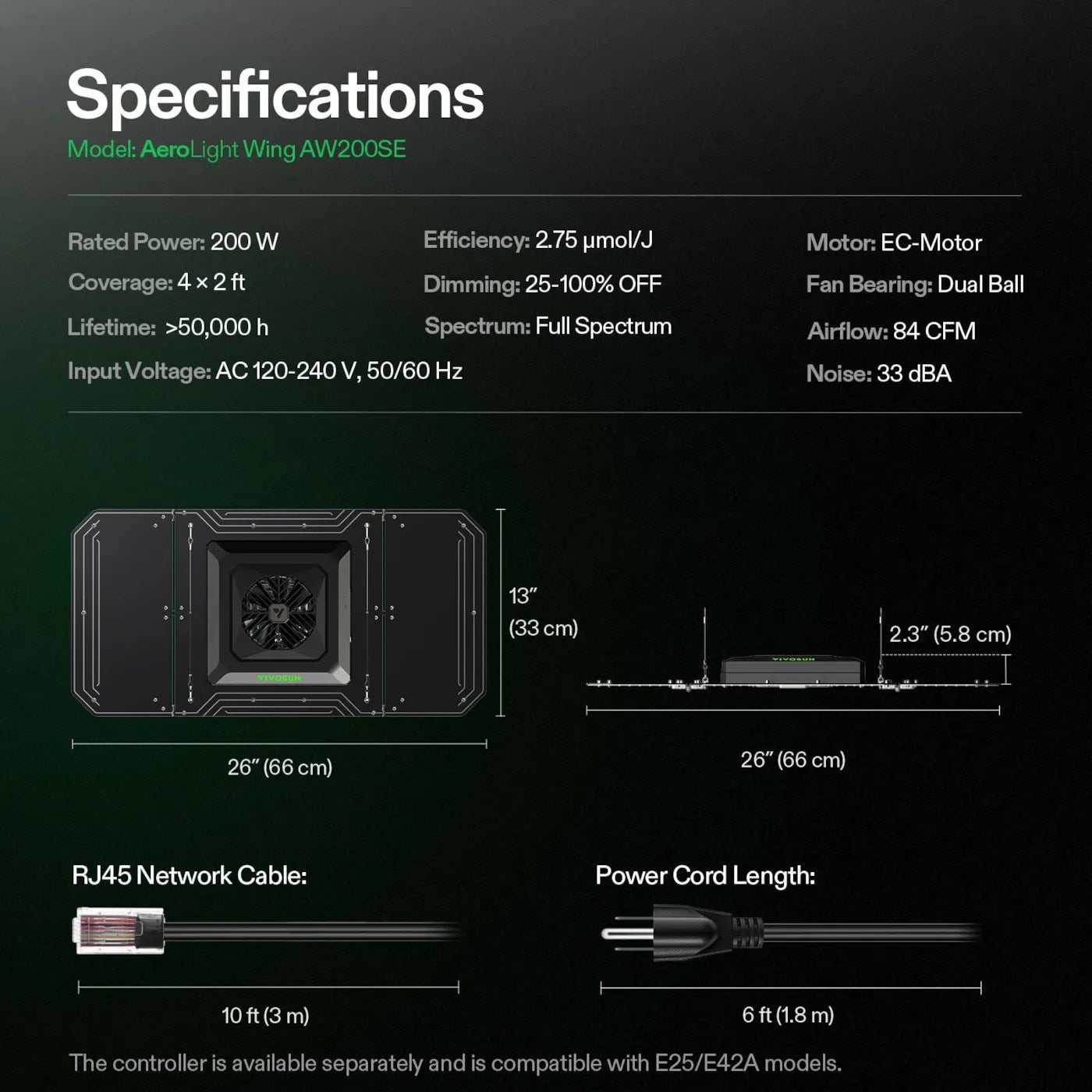 The Vivosun AeroLight Wing 200W LED Grow Light Kit provides a full-spectrum, tunable light output for optimal plant growth. Its advanced LED technology ensures high efficiency and uniform light distribution across the canopy. The integrated E42A kit allows for precise control over spectrum and intensity, adapting to various growth stages. This system is engineered for superior photosynthetic photon flux density (PPFD) and energy savings in horticultural applications.
