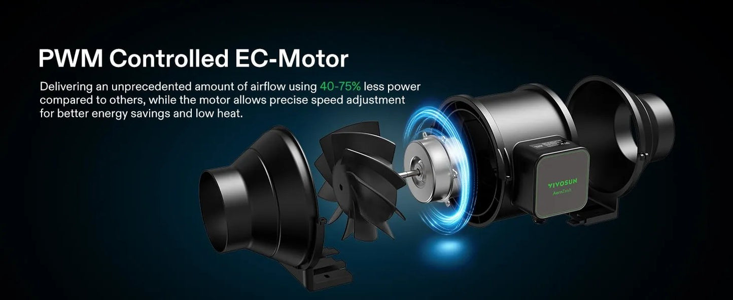 VIVOSUN AeroZesh S10 10-inch Inline EC Duct Fan, Quiet 2055m³/h Ventilation Grow